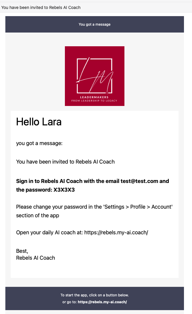 - Domain-Codes (for white-label apps) or Coach-Codes for the new teams you’ve set up. These codes are necessary to assign coachees and user accounts to the correct teams and structures.