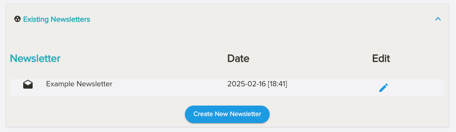 Once saved you can find your newsletters in a list and can later modify them.
