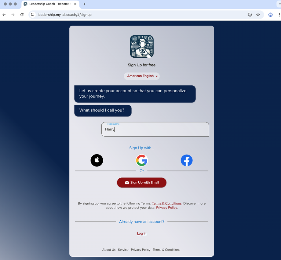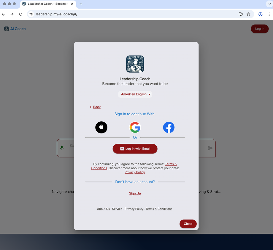 “Open the App” / “Start the AI Coach” / “Create an Account”.