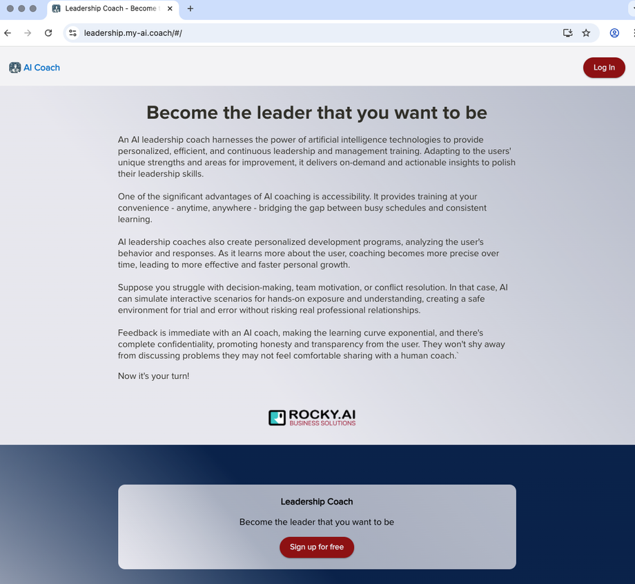 The home screen in your Rocky.ai white-label app combines a modern, intuitive design with integrated onboarding and SEO-optimized content. This makes it easier for your customers to get started while helping your white label web-app to be found better by search engines.